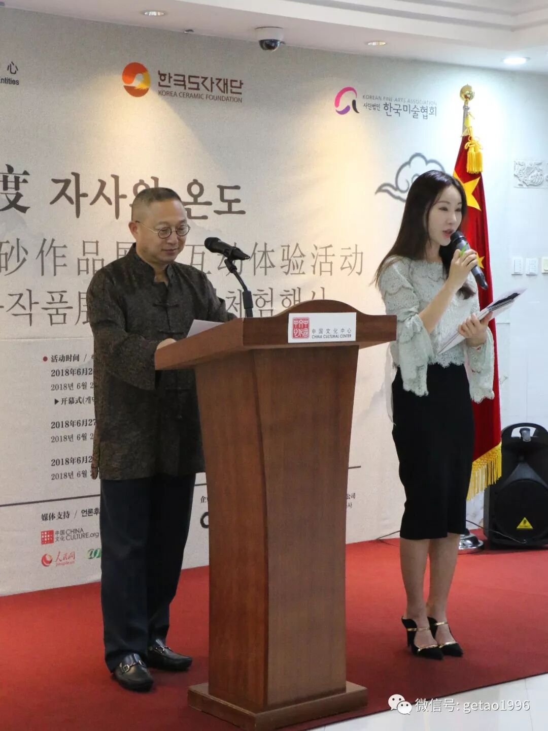随后韩国陶瓷协会与韩国美术协会的嘉宾分别致辞,指出中韩文化交流活动的必要性与重要意义,并预祝接下来的活动圆满成功。
