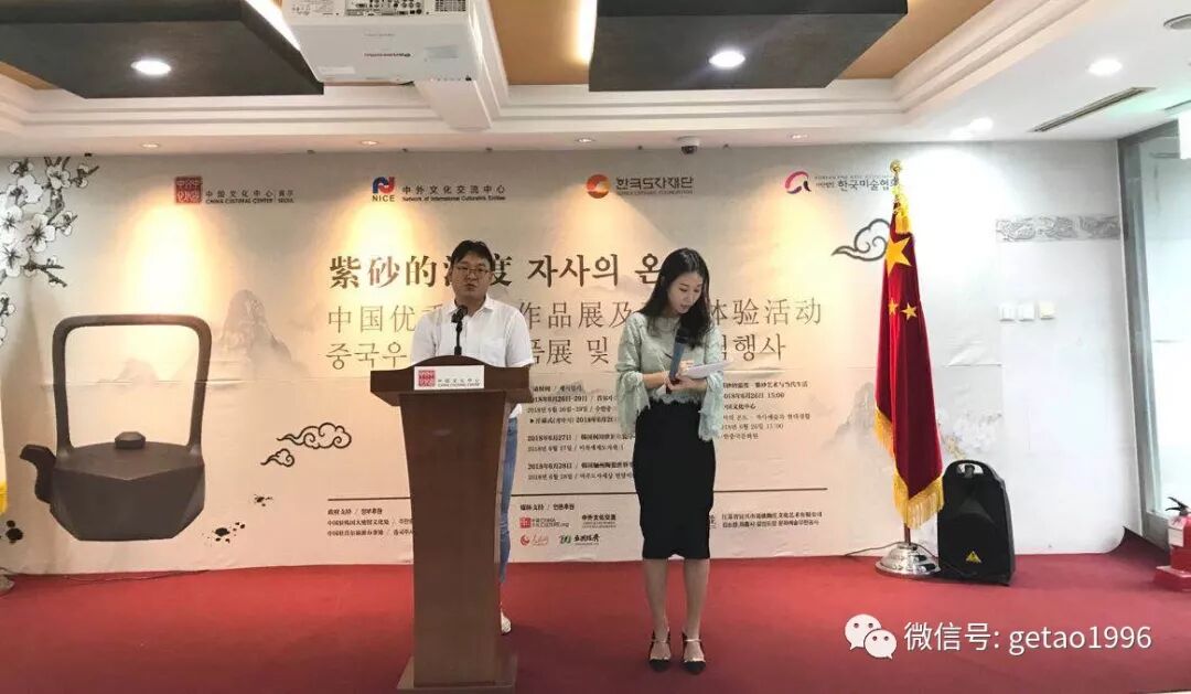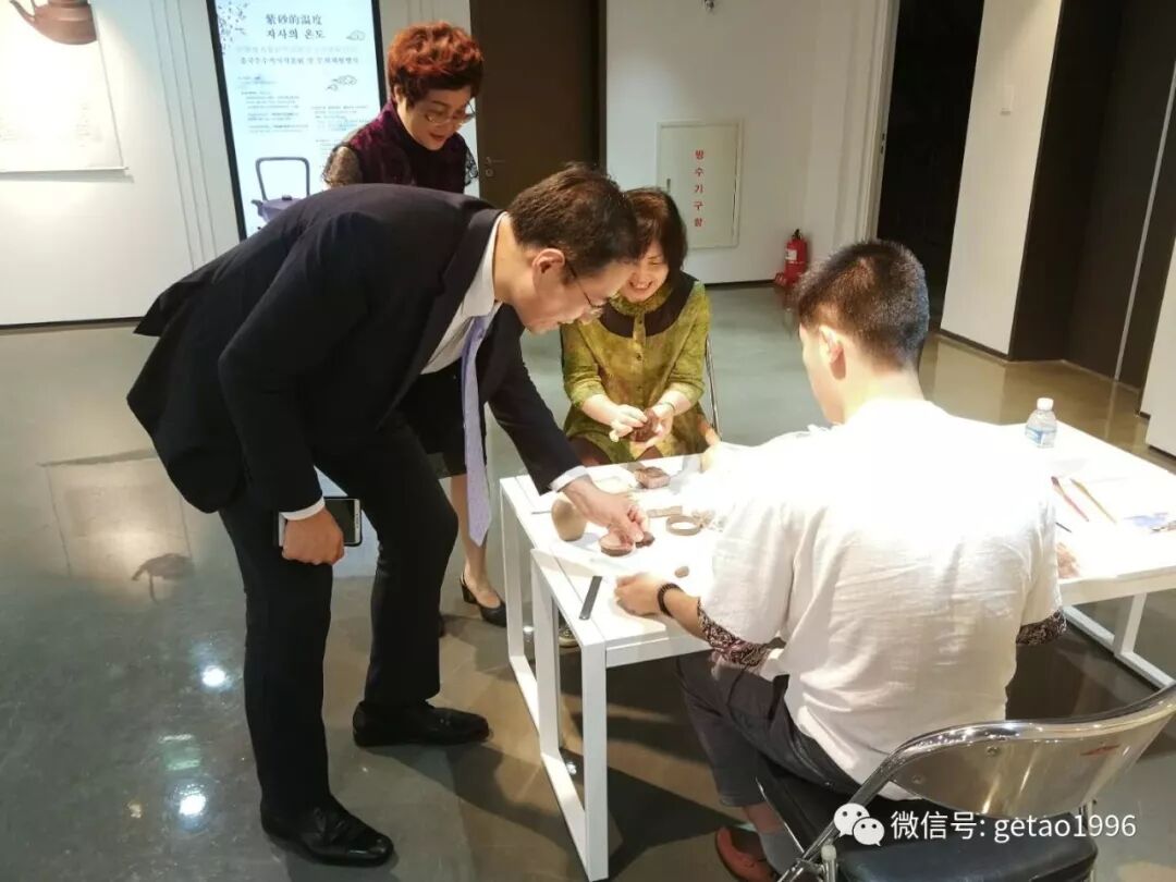著名工艺师葛韬发言,对各主办方和来访的嘉宾朋友们表达衷心的感谢,并表示希望沿着“一带一路”的轨迹,带着中国的紫砂文化来到韩国,从而通过紫砂这一媒介,向韩国朋友们讲述关于紫砂的中国故事。